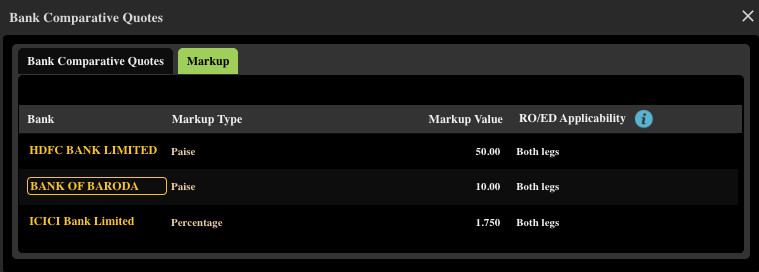 | Bank | Direct Bank | FX Retail Web | FX Retail Bharat Connect |